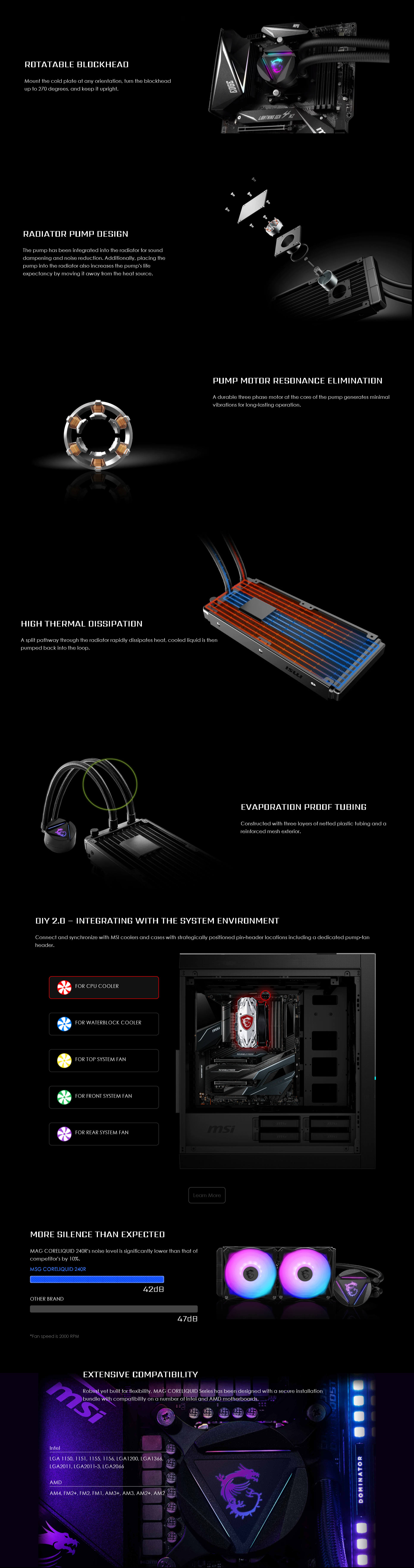 MSI MAG CoreLiquid 240R Liquid Cooler 2 Fan 120x120x25 LGA 1150/1151/1155/1156/1200 AM4/FM2+/FM2/FM1/AM3+/AM3/AM2+/AM2 Mag Core Liquid 240R