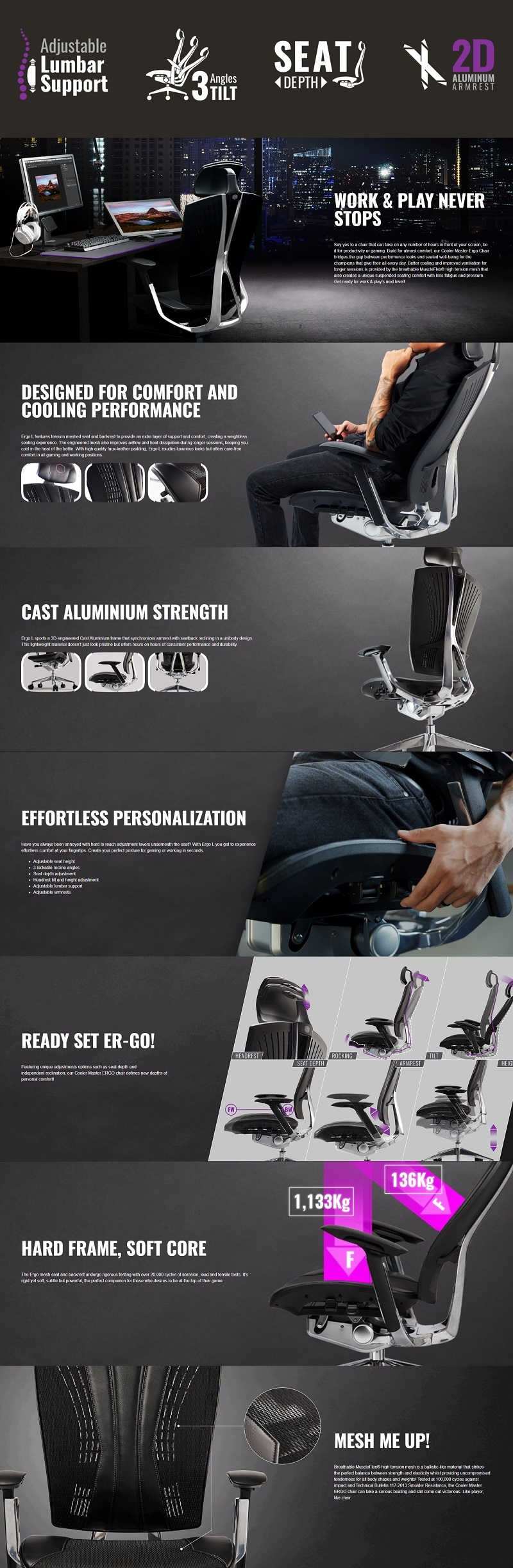 COOLER MASTER ERGO L ERGONOMIC CHAIR, ULTRA LARGE, PREMIUM ERGONOMIC (Cmi-Gcel-2019)
