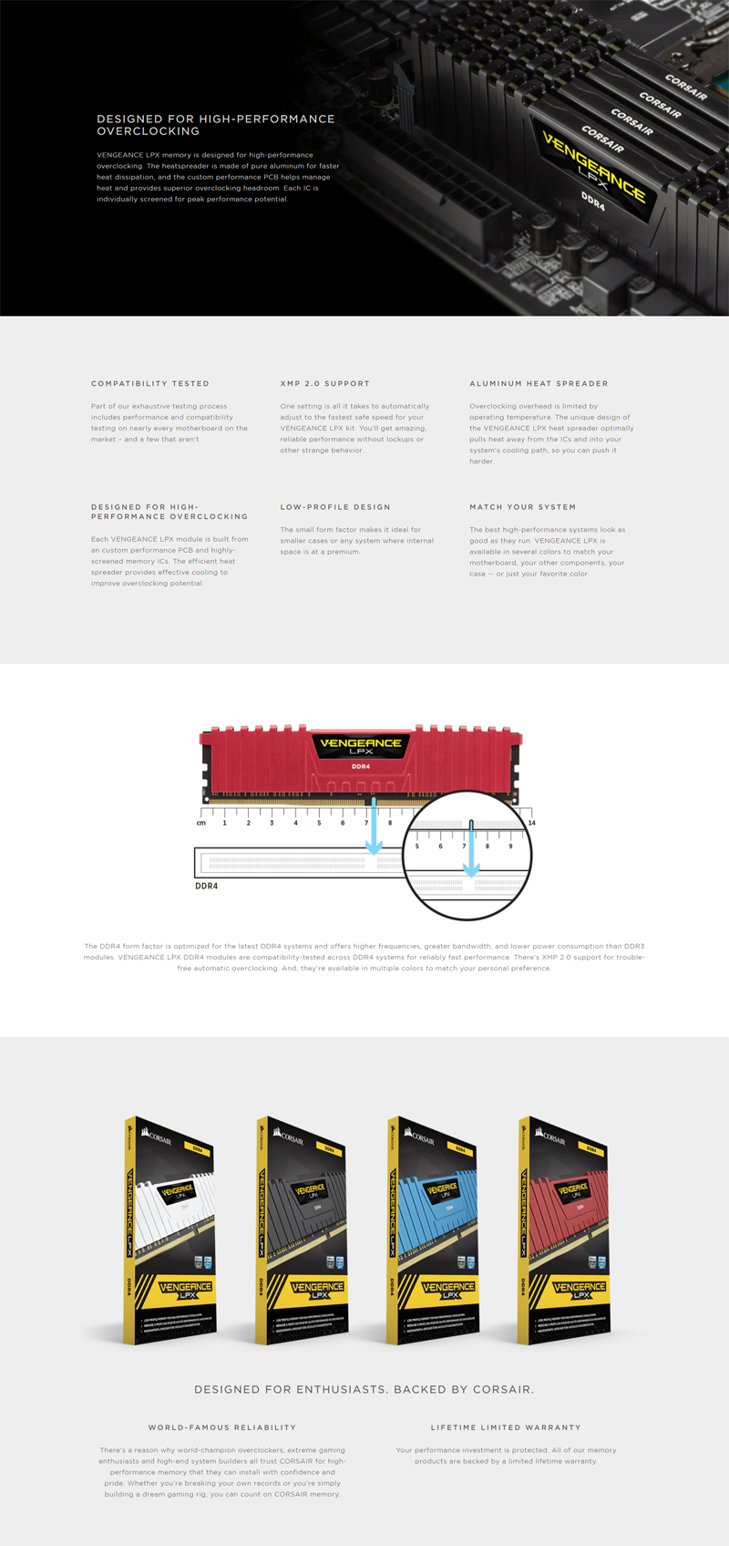 CORSAIR Vengeance LPX DDR4, 3600MHz 32GB 2 x 288 DIMM, Unbuffered, 18-22-22-42, black Heat spreader,1.35V, XMP 2.0,for AMD Ryzen