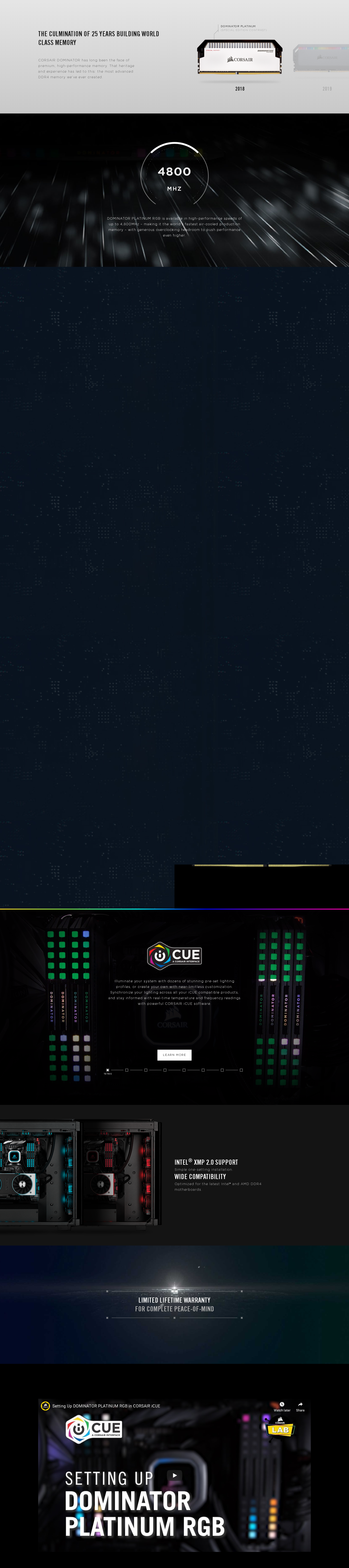 DUAL CHANNEL: 16GB (2x8GB) DDR4, 3600MHz, Unbuffered, 18-19-19-39, XMP 2.0, DOMINATOR PLATINUM RGB Black Heatspreader, RGB LED, 1.35V Memory