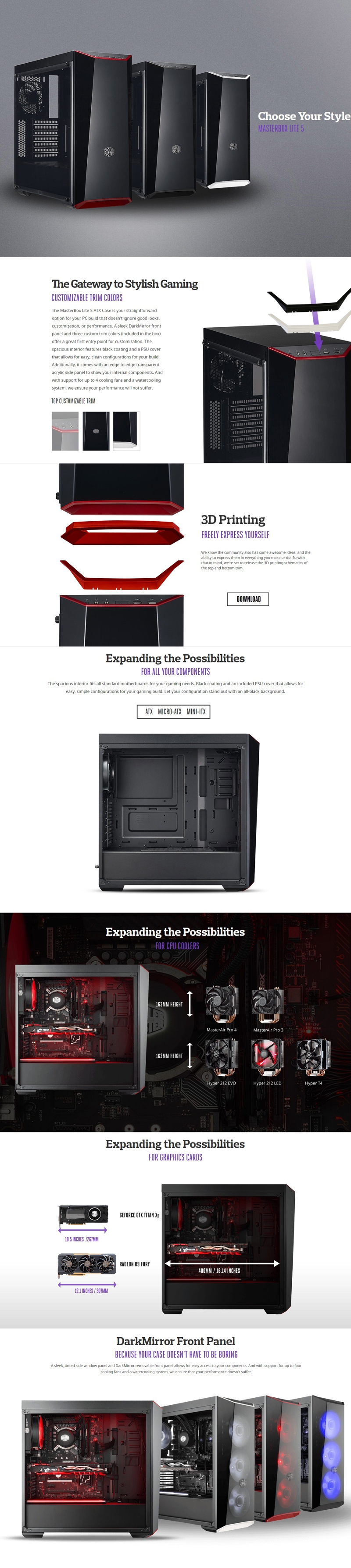 Coolermaster Masterbox Lite 5 Atx Black With Dark Mirror Design Full Size Transparent P Components