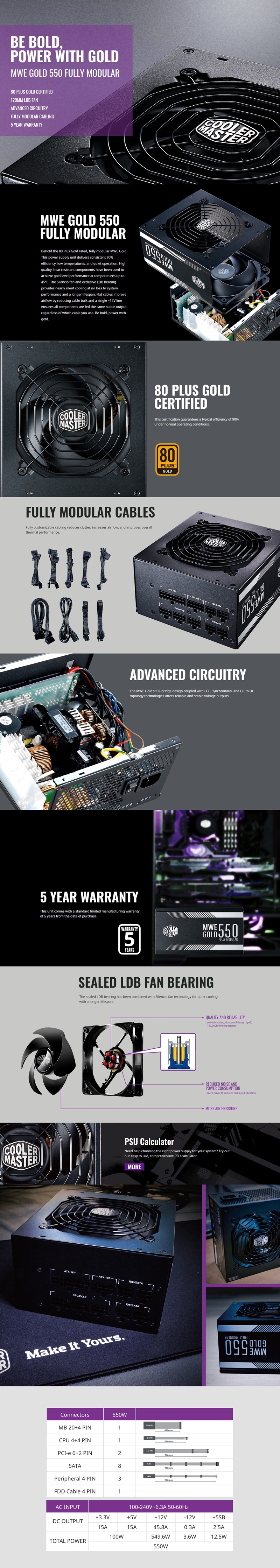 Coolermaster Mwe 550w Gold Modular Fully Modular Cable Design 80 Plus Gold Compact Size Components
