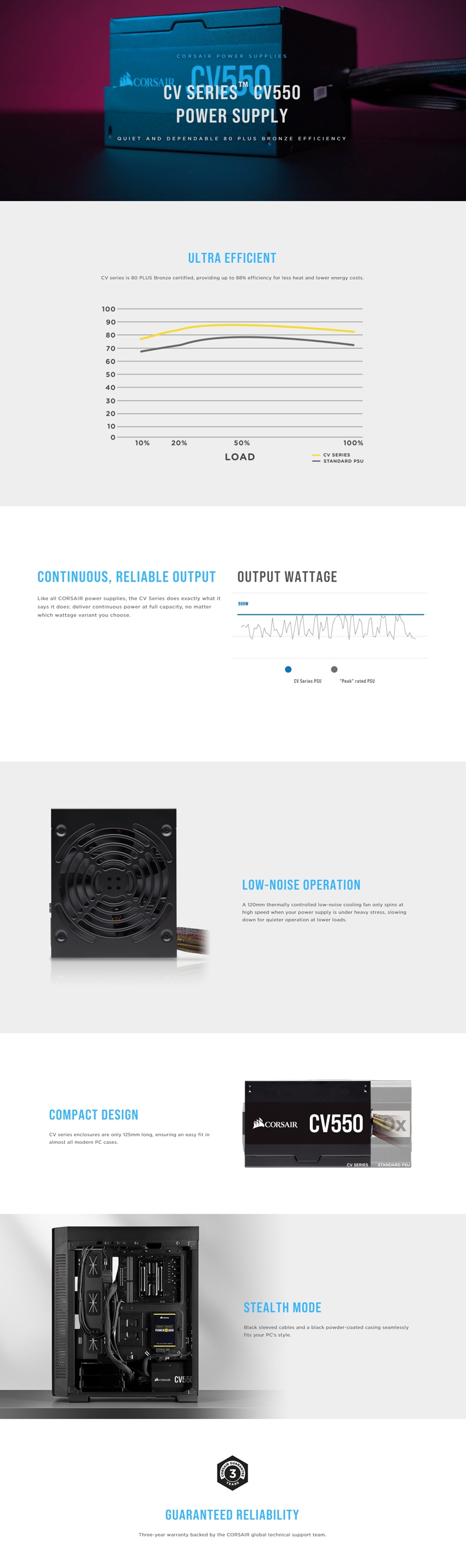 Corsair CV Series, CV550, 80 PLUS Bronze 550 Watt Power Supply