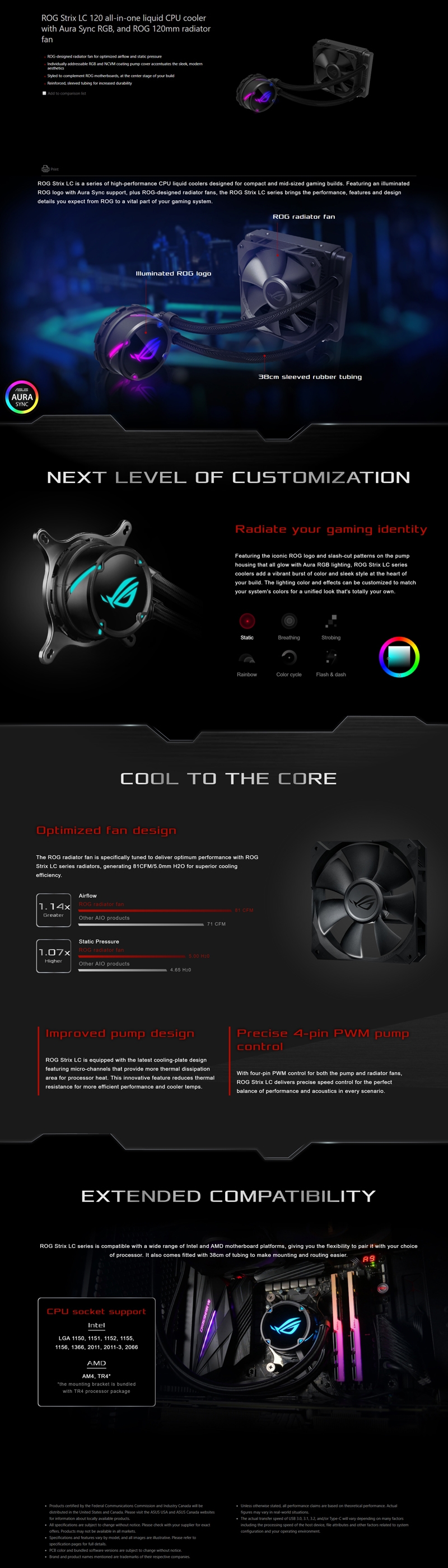 Asus Rog Strix Lc 120 All-In-One Liquid Cpu Cooler. Aura Sync Single Rog 120Mm Radiator Fan Rog Strix Lc 120