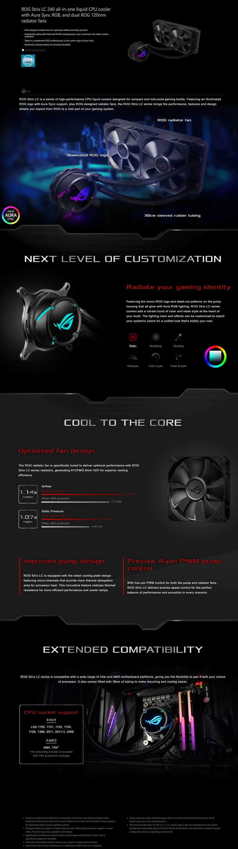 Asus Rog Strix Lc 240 All-In-One Lquid Cpu Cooler Aura Sync Dual Rog 120Mm Radiator Fans Rog Strix Lc 240