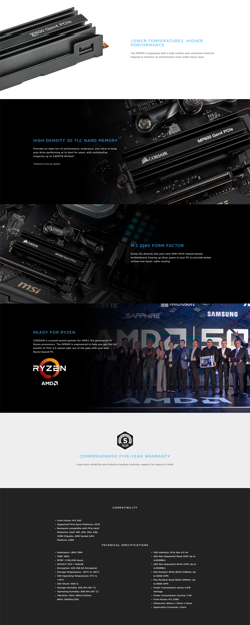Force MP600 series Gen4 NVMe PCIe M.2 SSD 1TB; Up to 4,950MB/s Sequential Read, Up to 4,250MB/s Sequential Write