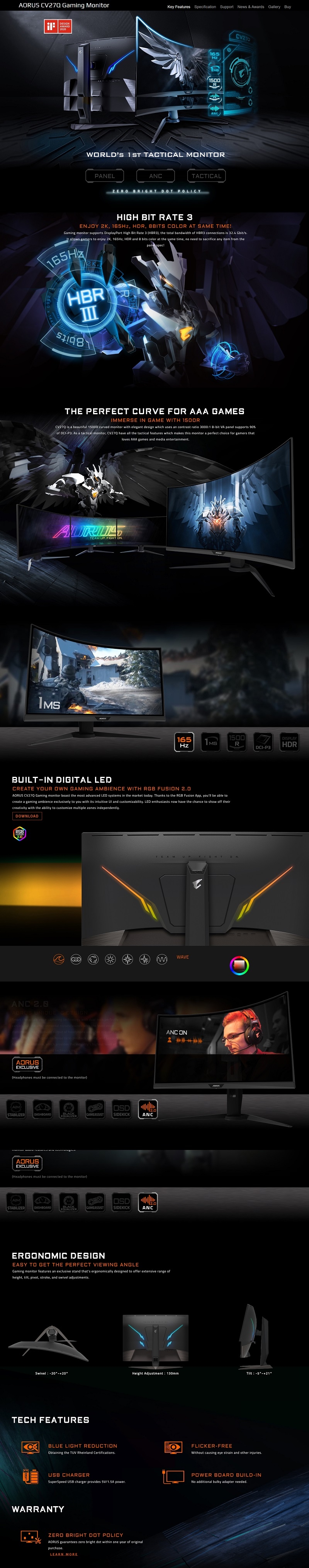 Gigabyte Aorus Cv27Q Curved Gaming Monitor 27" (CV27Q)