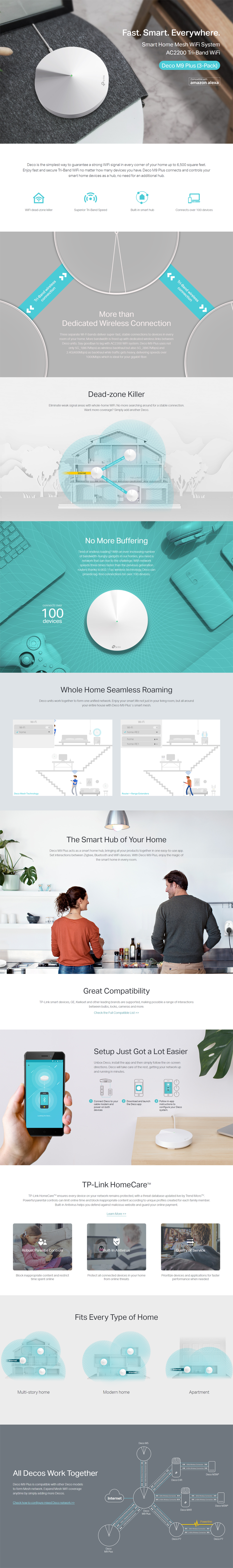 Tp-Link Deco M9 Plus 3-Pack Ac2200 Smart Home Mesh Wifi 3Yr Decom9Plus(3-Pack)