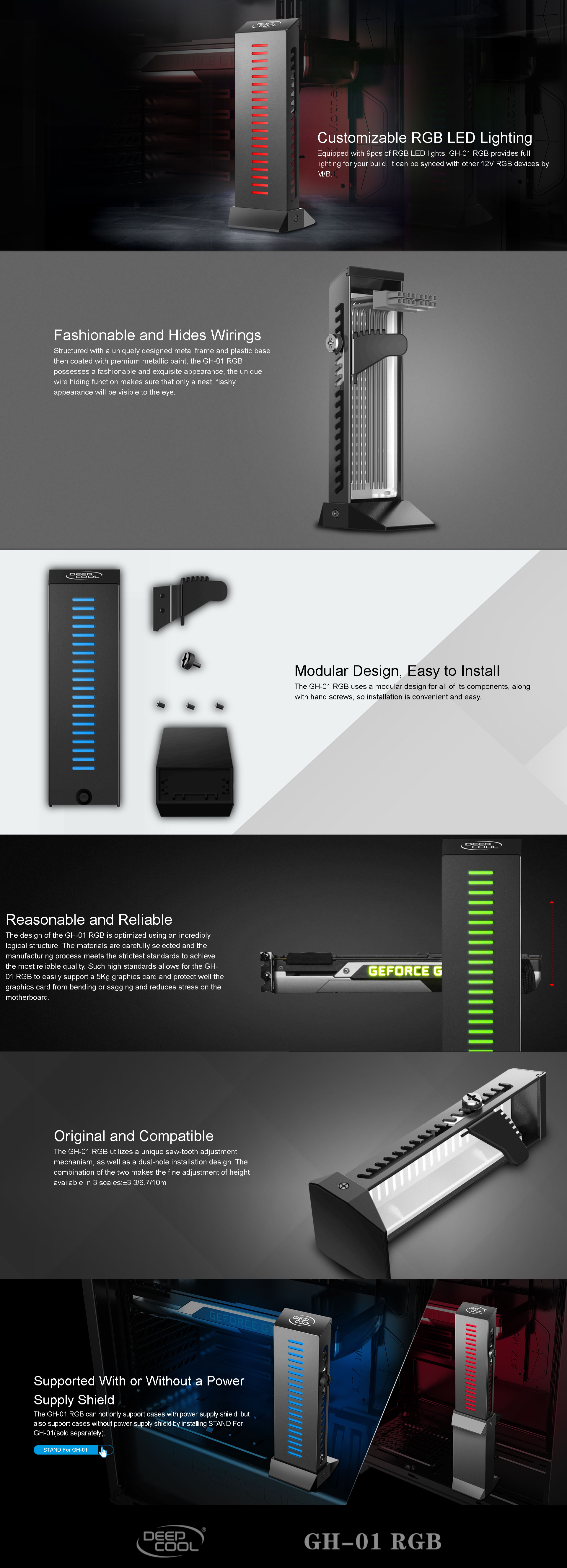 Manufacturer: DeepCool. Equipped with RGB LED lights, GH-01 RGB provides full lighting for your build, it can be synced with other 12V RGB devices.
