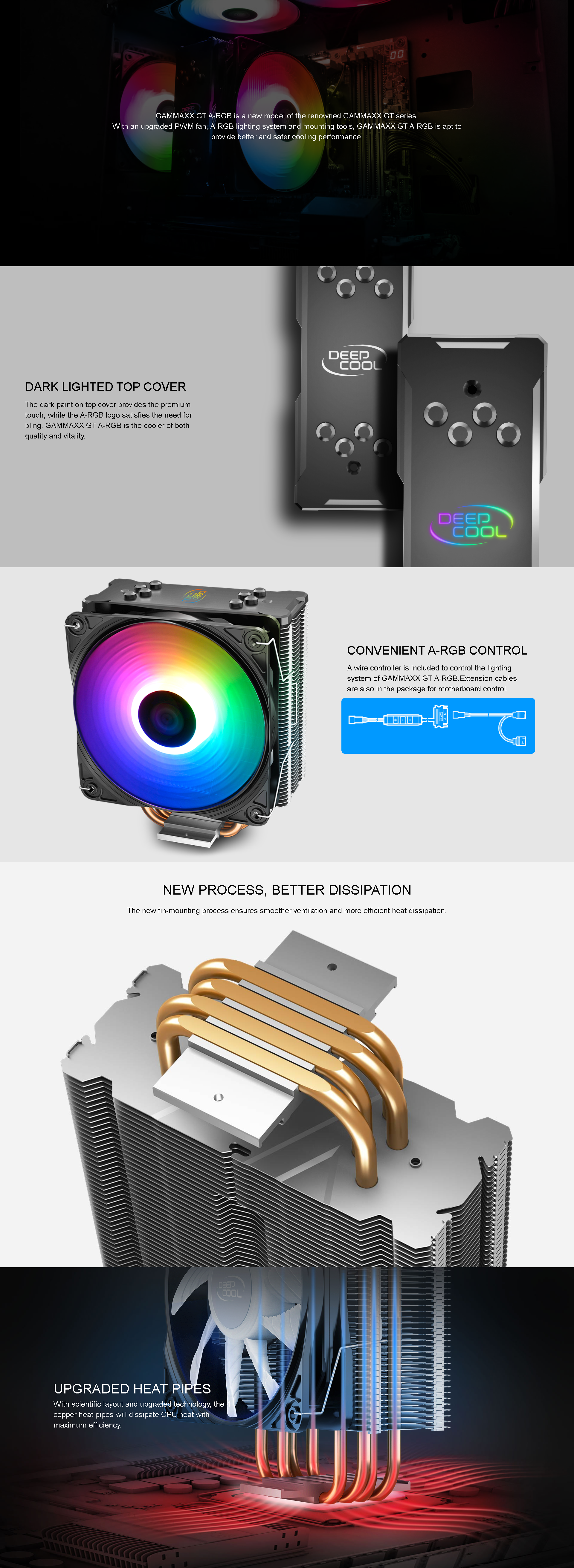 Manufacturer: DeepCool. With an upgraded PWM fan, A-RGB lighting system and mounting tools, GAMMAXX GT A-RGB is apt to provide better and safer cooling performance.