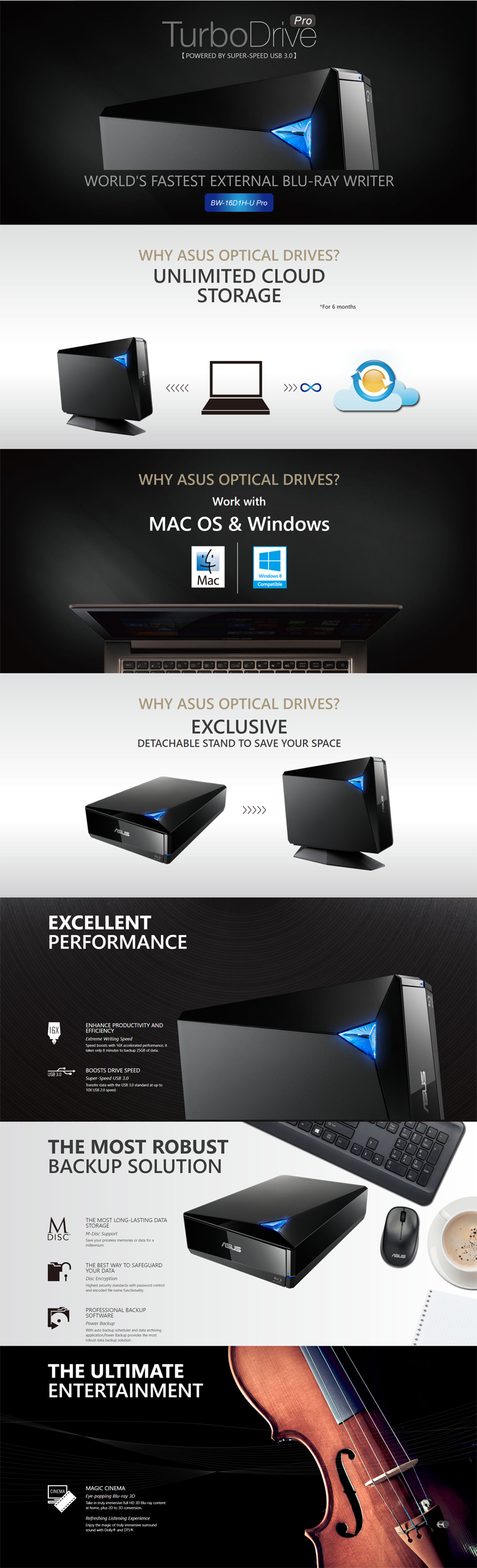 Asus Bw-16D1H-U Pro Ultra Fast 16X Blu-Ray Burner Bw-16D1H-U Pro/Blk/G/As/P