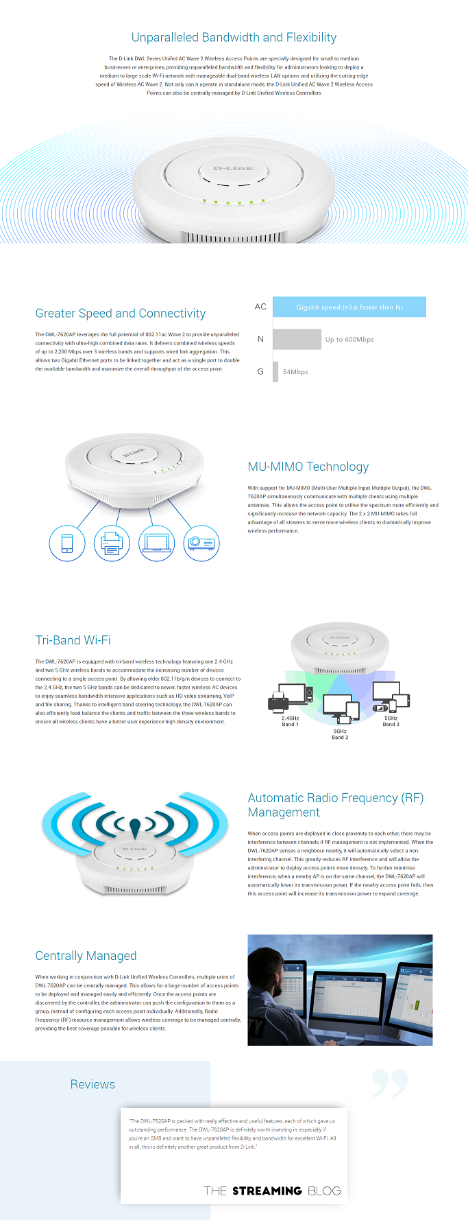 Unified Wireless Ac2200 Wave 2 Tri-Band Poe Access Point For Dwc-1000 Dwc-2000 Dwl-7620Ap