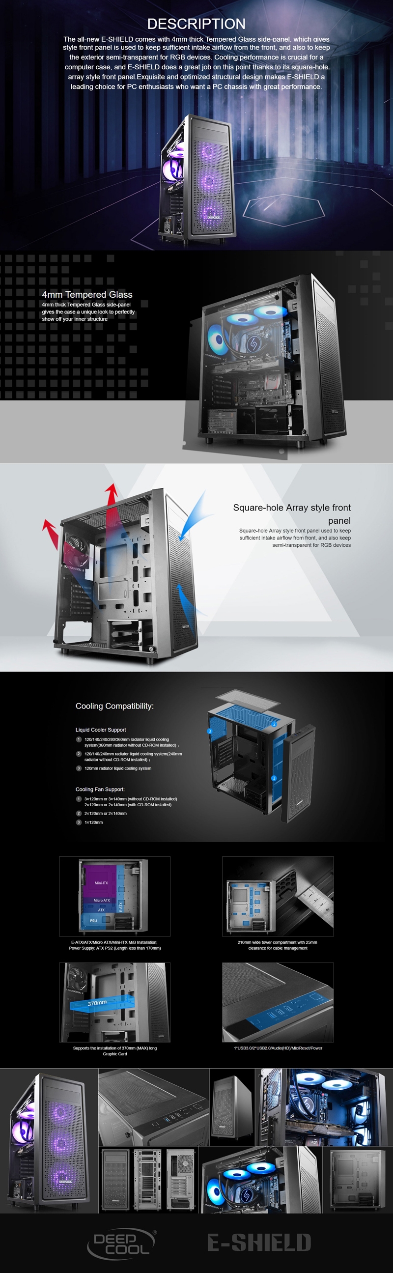 Deepcool E-Shield E-Atx Pc Case Tempered Glass Side Panel E-Shield