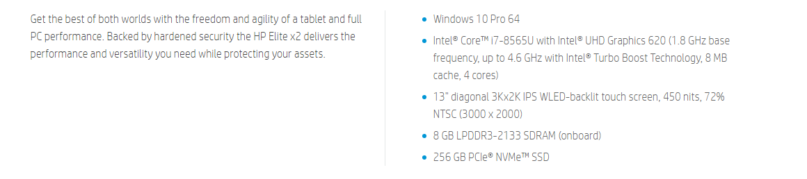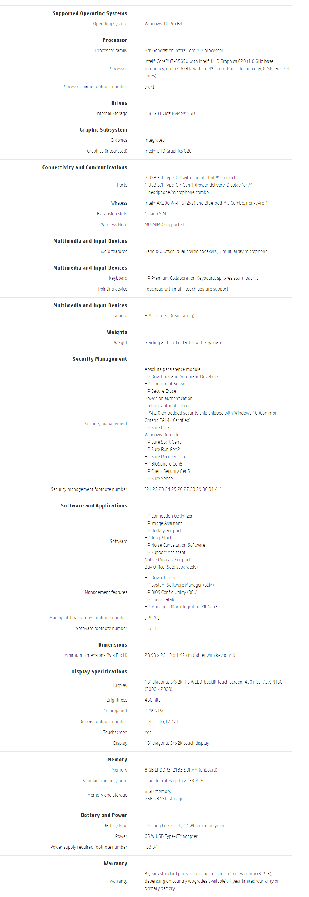 HP Elite x2 G4, 13" 3K2K TS, i7-8565U, 8GB, 256GB SSD, W10P64, PEN, KEYBOARD, 3YR ONSITE WTY