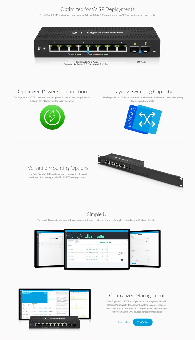 Ubiquiti Edgeswitch 10Xp - 8X 1Gbps Ethernert With 24V Poe 2X 1Gbps Sfp Es-10Xp