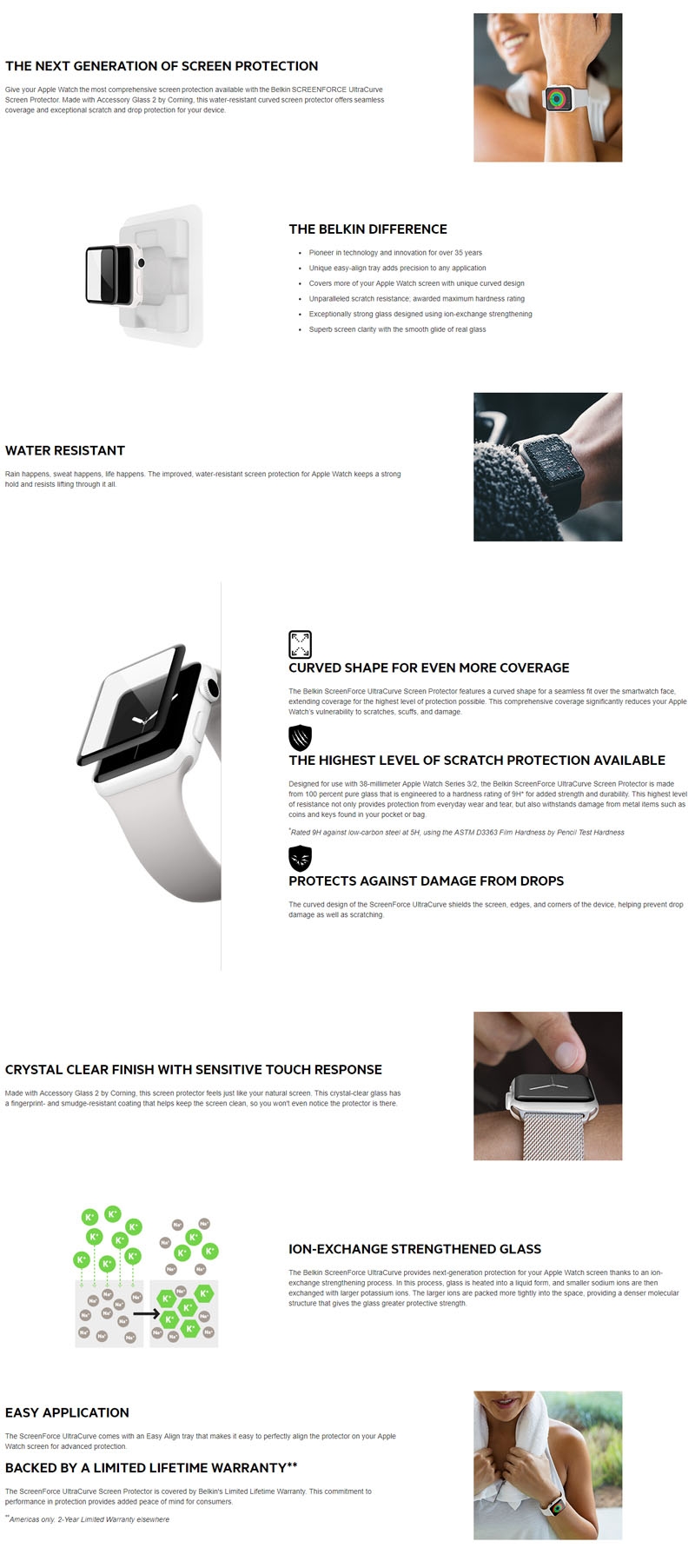 - Belkin ScreenForce UltraCurve Screen Protector (Series 3/2, 38mm)