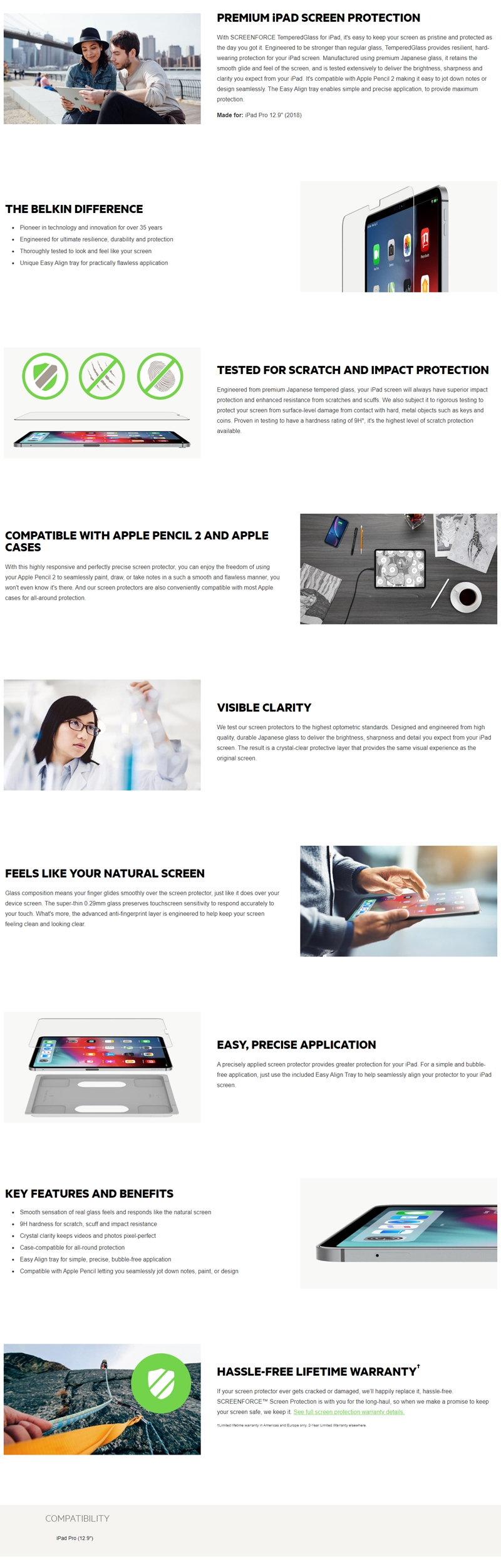 Belkin SCREENFORCE™ TemperedGlass Screen Protection for iPad Pro 12.9 (2018) F8W935Zz