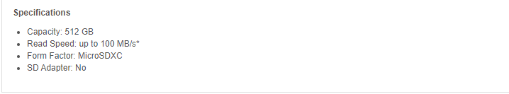 - Capacities up to 512GB (1GB=1,000,000,000 bytes Actual user storage less) to store even more hours of Full HD video (Approximations; results and Full HD (1920x1080) video Support may vary based on host device, file attributes and other factors)