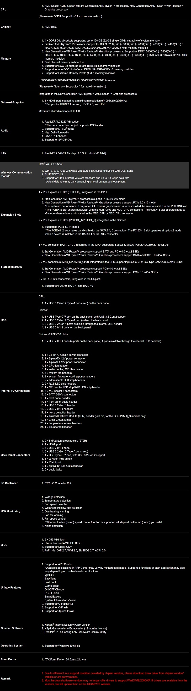 | MPN: | GA-B550-AORUS-MASTER Link |