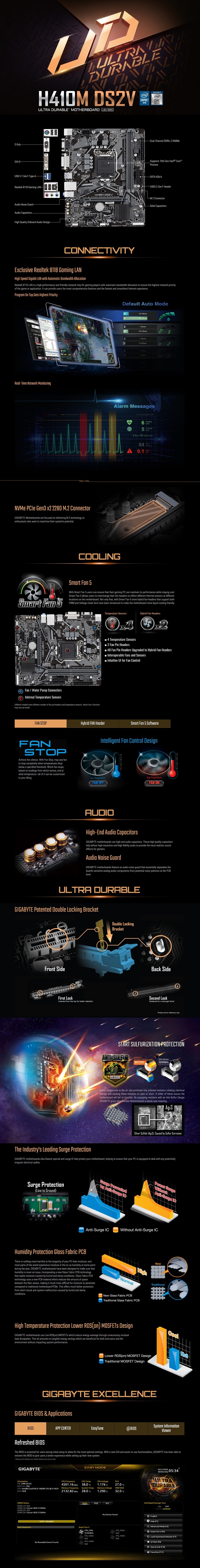 Gigabyte Intel® H410 Ultra Durable Motherboard with GIGABYTE 8118 Gaming LAN, Anti-Sulfur Resistor, Smart Fan 5 (Ga-H410M-Ds2V)