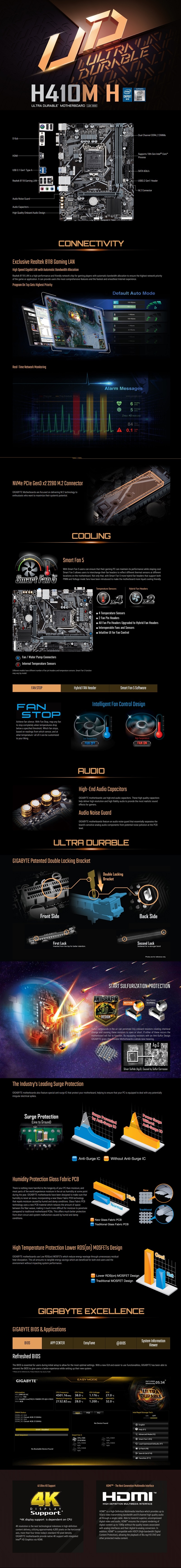 Gigabyte Intel® H410 Ultra Durable Motherboard with GIGABYTE 8118 Gaming LAN, Anti-Sulfur Resistor, Smart Fan 5 (Ga-H410M-H)