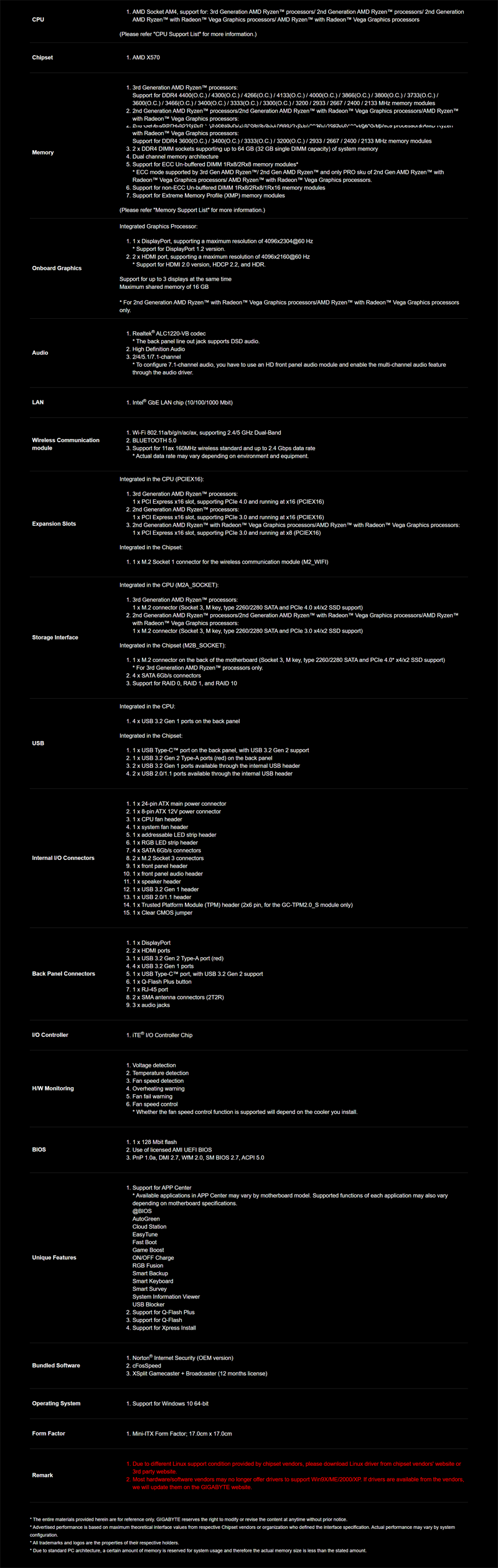 | MPN: | GA-X570-I-AORUS-PRO-WIFI |