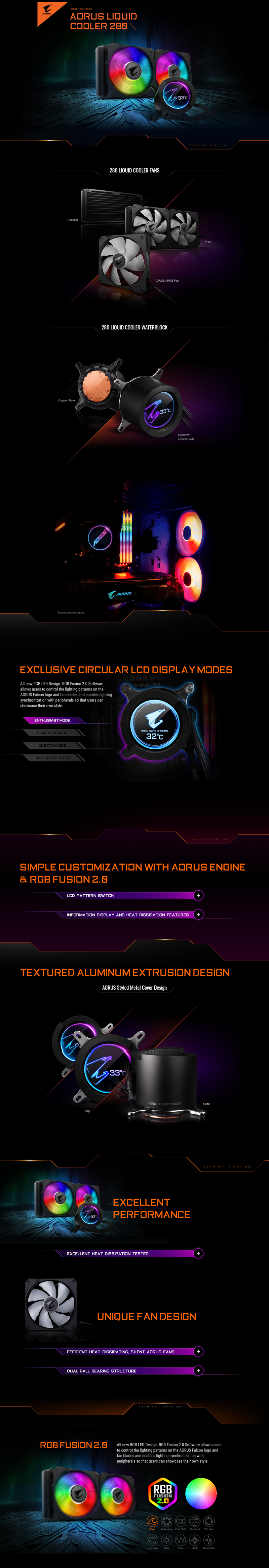 Aorus Cpu Liquid Cooler 280 W/Lcd Display Intel/Amd Socket 2 X 140Mm Rgb Fans 3Yr Wty Gp-Aorus-Liquid-Cooler-28