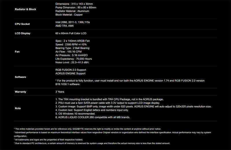 | MPN: | GP-AORUS-LIQUID-COOLER-280 |
