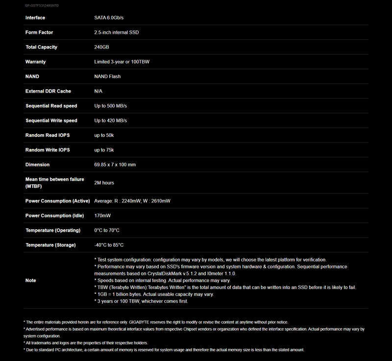 Gigabyte SSD 2.5": 240Gb Sata3 GP-GSTFS31240GNTD
