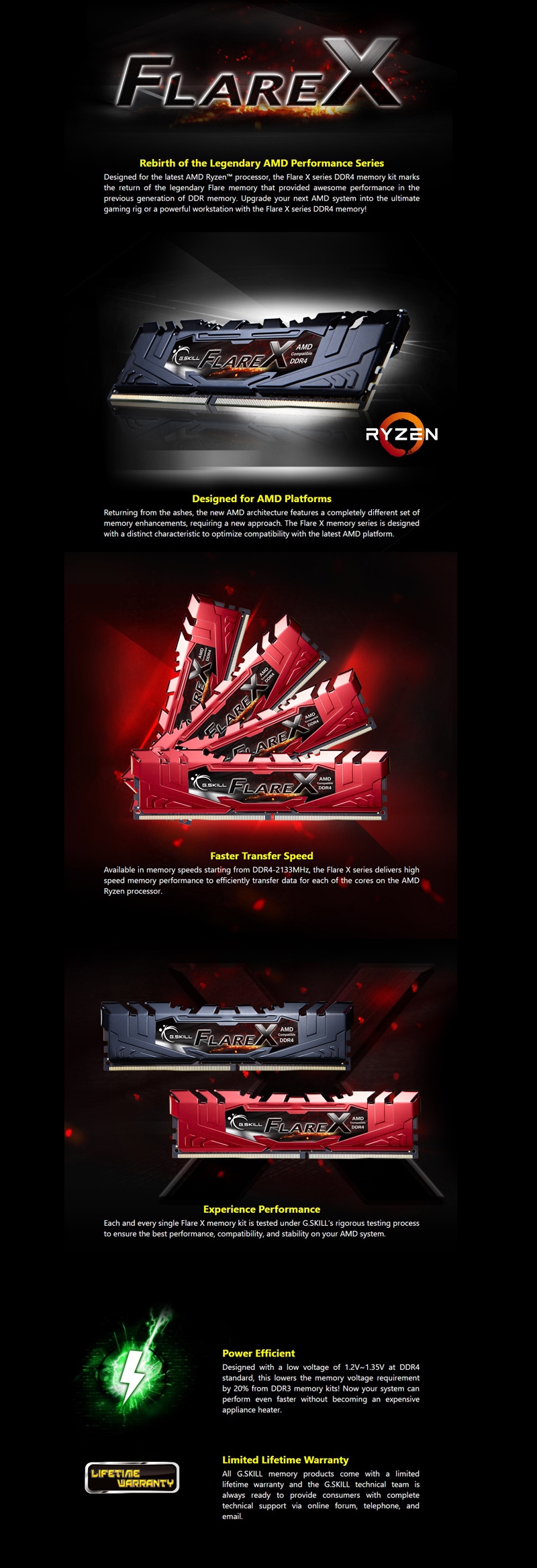 Manufacturer: G.Skill. Designed for the AMD Ryzen processor, the G.Skill Flare X DDR4 memory series upgrades your AMD system into the ultimate gaming rig or a powerful workstation!