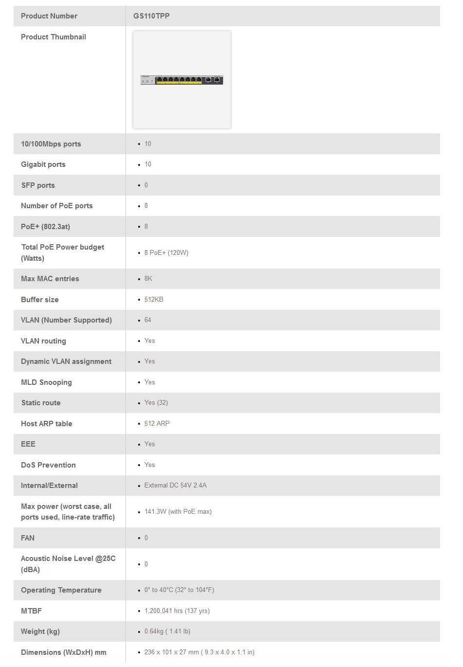 NETGEAR 8-port PoE+ Gigabit Smart Managed Pro Switch with Cloud Management & 2 x SFP ports (120W PoE budget extendable to 190W), ProSAFE Lifetime War GS110TPP-100AJS