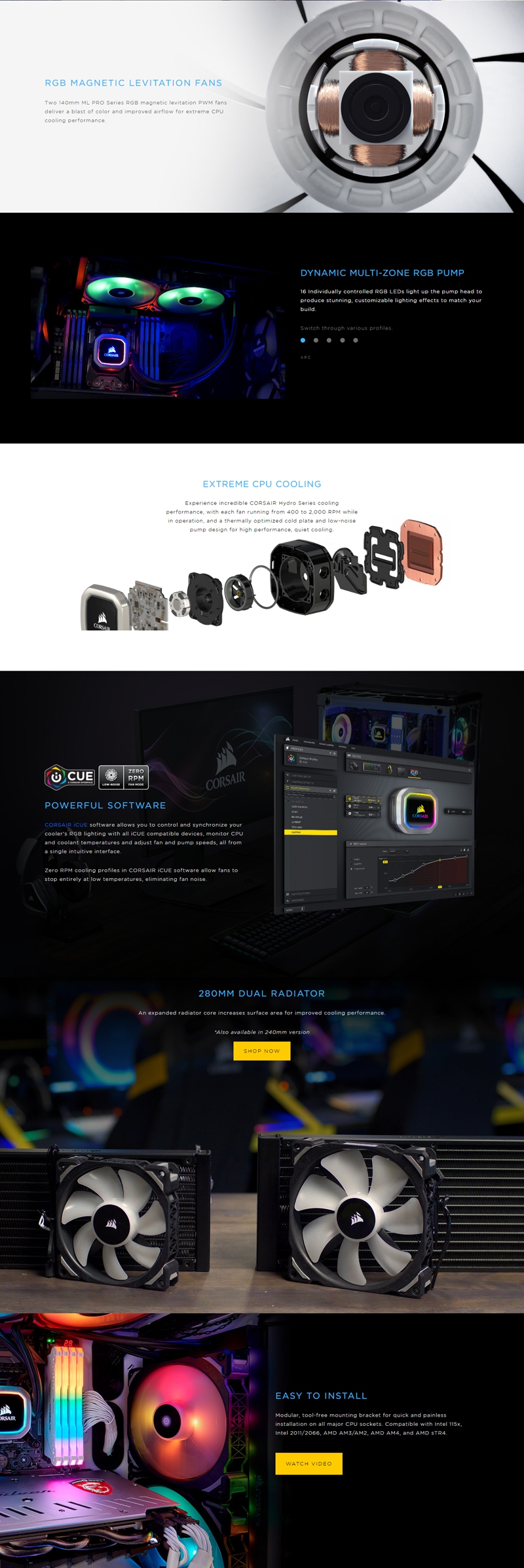 280Mm Radiator Two Ml Pro Rgb Pwm 140Mm Fans. Icue Support Intel 115X 1366 2011 2066 Amd Am4 Tr4 Socket H115I-Rgb-Platinum