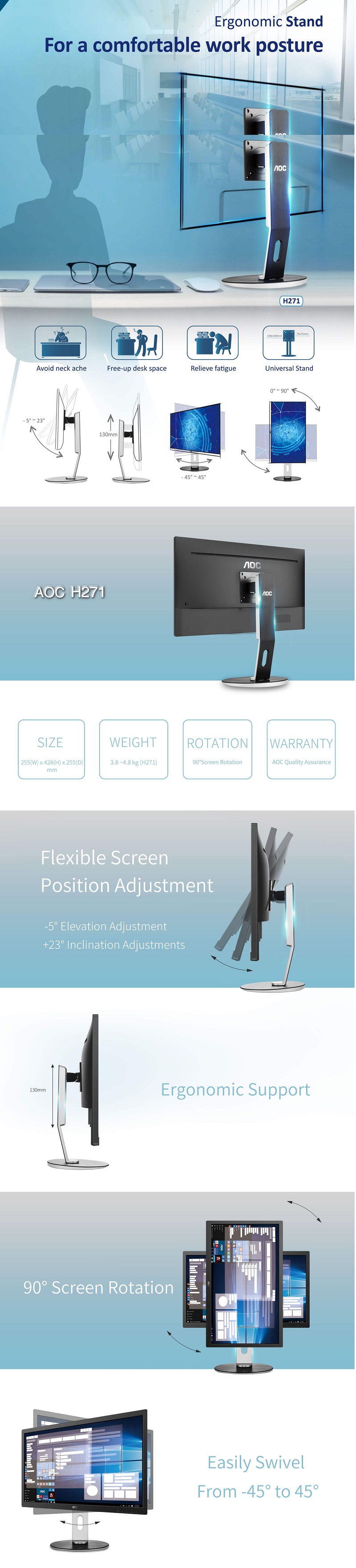 AOC VESA MONITOR STAND 100X100MM OR 75X75MM (H271)