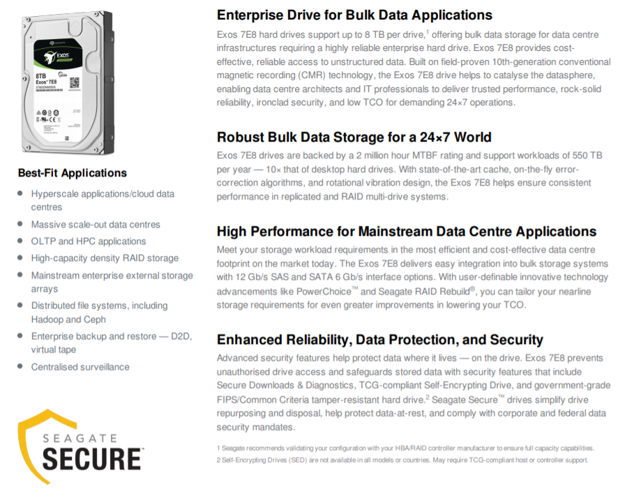Seagate 8TB 3.5" SAS EXOS 7E8 Enterprise HDD Capacity, 8TB, 12Gb/s, 512e, 256MB Cache HDD ST8000NM001A St8000Nm001A