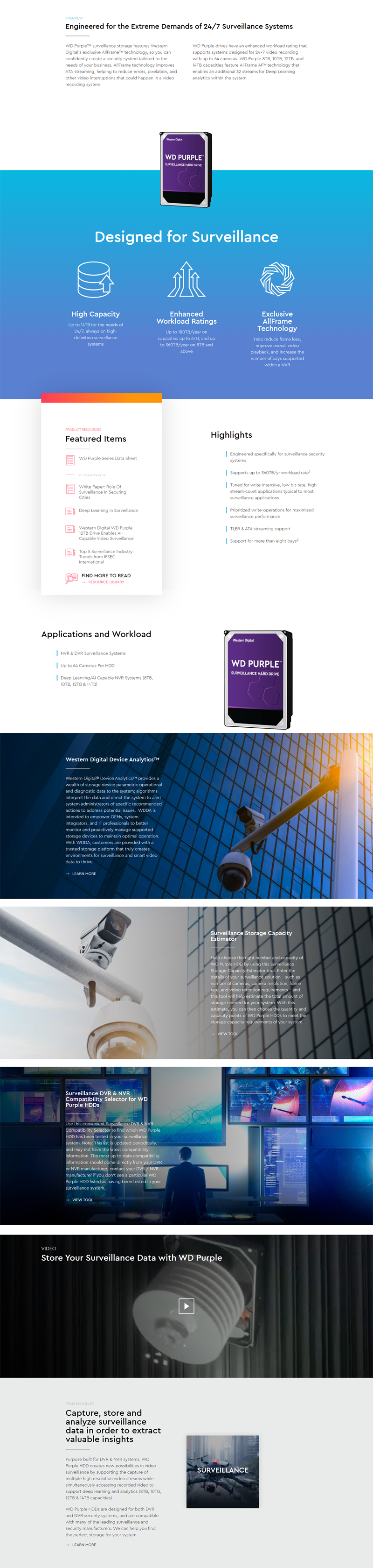 Western Digital WD Purple 8TB 3.5" Surveillance HDD 7200RPM 256MB SATA3 6Gb/s 245MB/s WD82PURZ