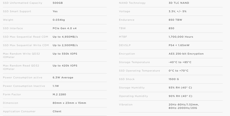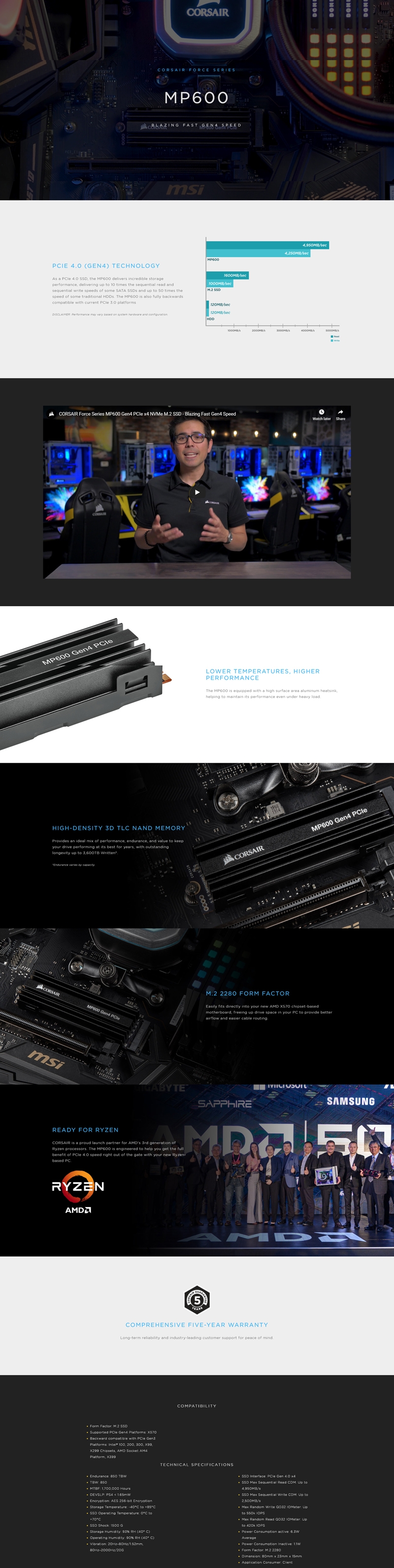 Corsair Force Mp600 500Gb Nvme Pcie X4 Gen4 Ssd M.2(2280) - 3D Tlc Nand 4950/ 2500 Mb/S 420/ 550K Iops 1.7Mil Hrs Mtbf 5Yrs Wty Cssd-F500Gbmp600