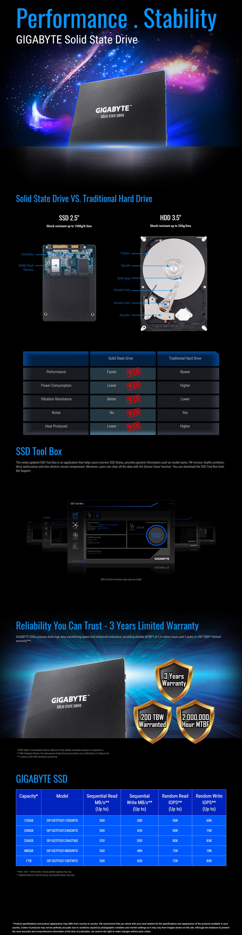 Gigabyte Ssd 480Gb 2.5" Sata3 6Gb/s 550/ 480 Mb/S 75K/ 70K 200Tbw 2M Hrs Mtbf Hmb Trim & Smart Solid State Drive 3Yrs Wty Gp-Gstfs31480Gntd