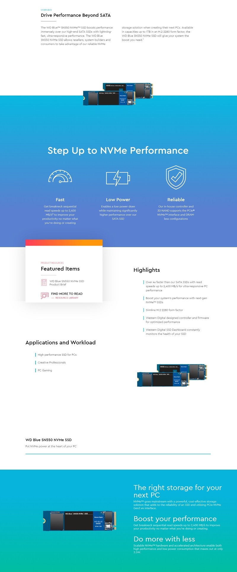 Western Digital Blue Sn550 1Tb Nvme M.2 2280 Pcie Gen3 8 Gb/ S Ssd (Wds100T2B0C)