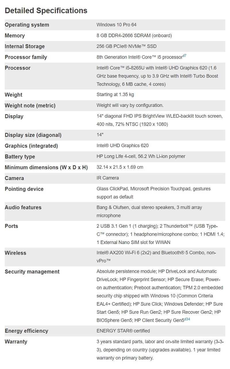 I5-8265U 8Gb(Onboard) Ssd-256Gb 14"(1920X1080)-Touch Wlan+Bt Ir-Webcam Pen W10P-64B 3Yr Onsite 7Zt77Pa