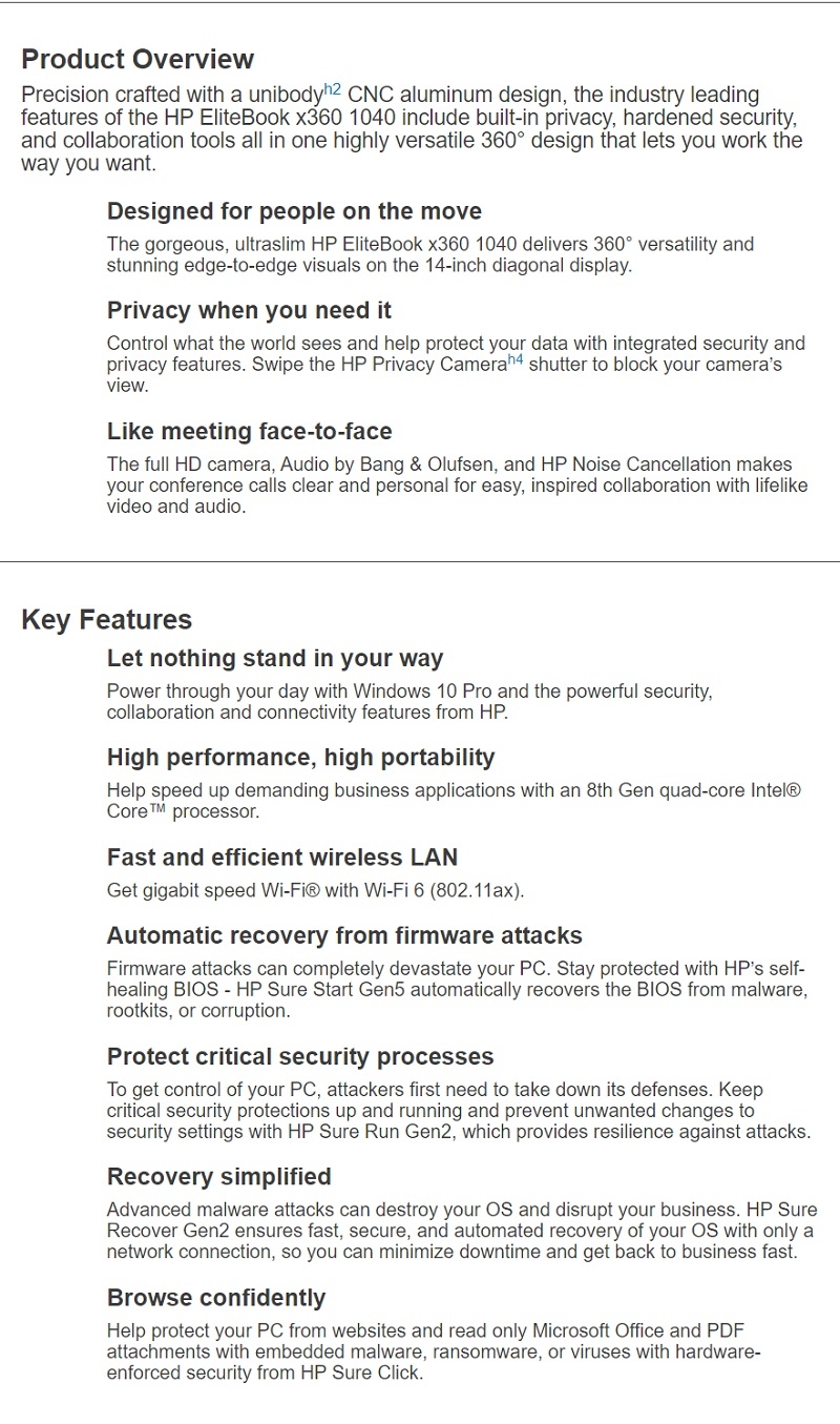 HP EliteBook x360 1040 G6 Notebook PC (Touchscreen) (7Zt76Pa)