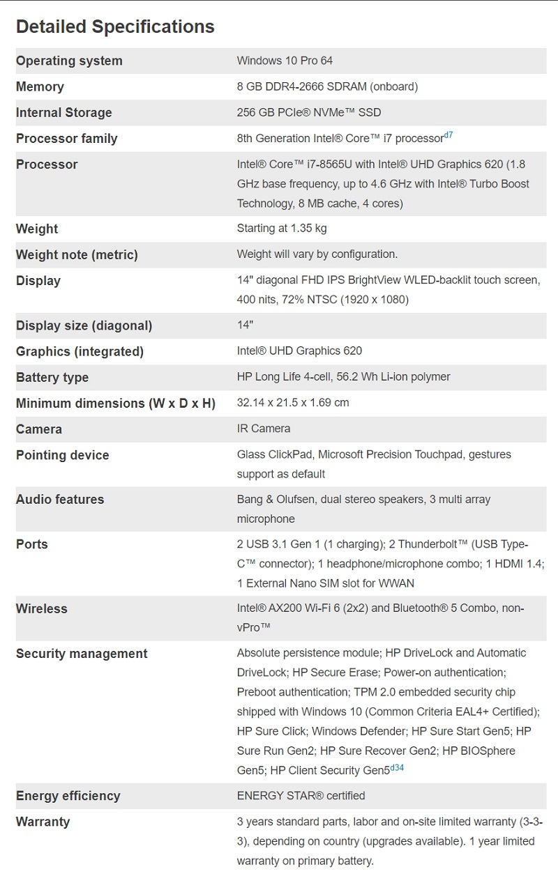 I7-8565U 8Gb(Onboard) Ssd-256Gb 14"(1920X1080)-Touch Wlan+Bt Ir-Webcam Pen W10P-64B 3Yr Onsite 7Zt76Pa