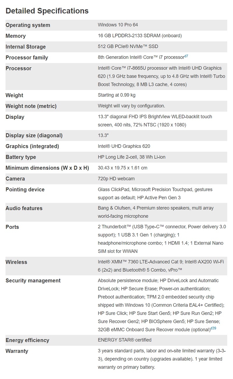 I7-8665U Vpro 16Gb(Onboard) Ssd-512Gb 13.3"(1920X1080)-Touch Wlan+Bt+Wwan(Lte) Pen 2Cell W10P-64B 3Yr Onsite 9Gd32Pa