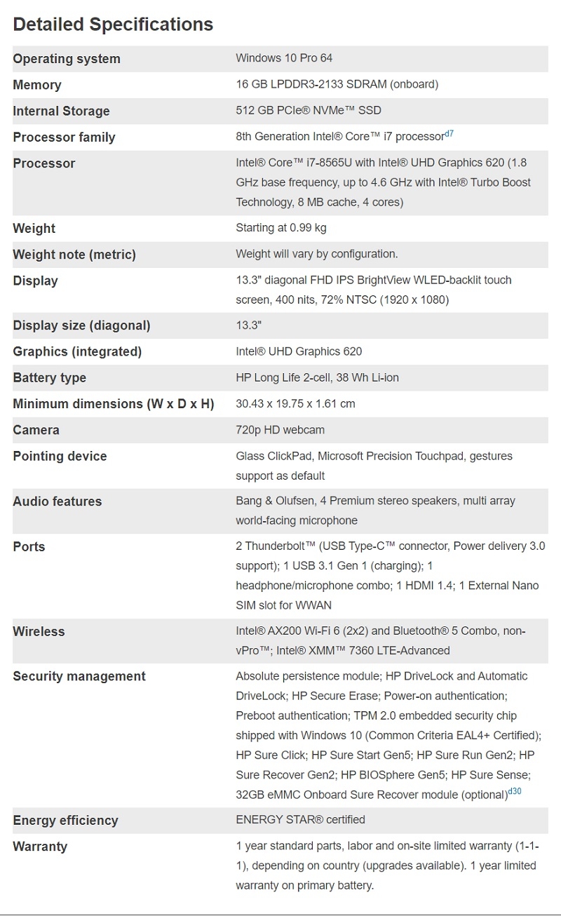 I7-8565U 16Gb(Onboard) Ssd-512Gb 13.3"(1920X1080)-Touch Wlan+Bt+Wwan(Lte) Pen 2Cell W10P-64B 3Yr Onsite 9Ju33Pa