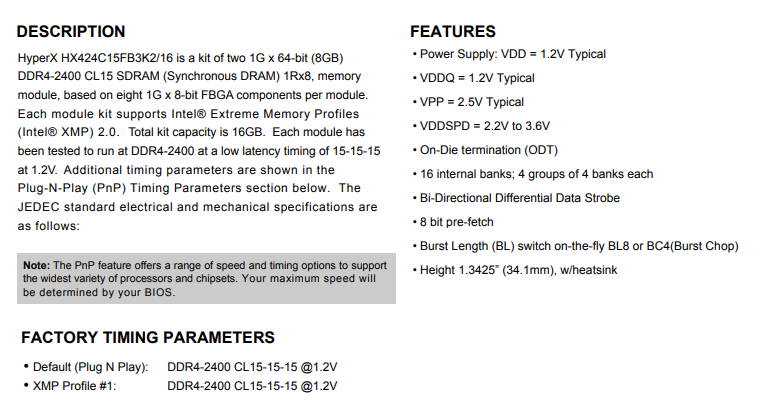 16GB 2400MHz DDR4 CL15 DIMM (Kit of 2) 1Rx8 HyperX FURY Black