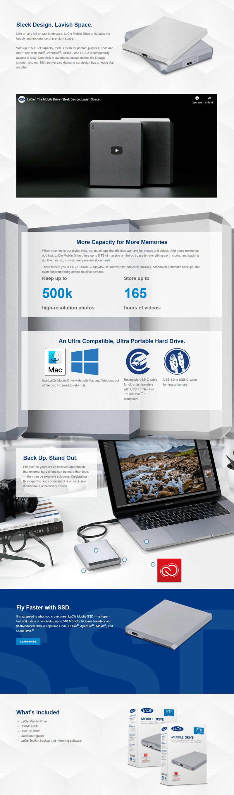 Seagate Lacie 5Tb 2.5" Usb 3 To Usb-C Diamond Cut External Hdd. Sthg5000400. 2 Years Warranty Sthg5000400