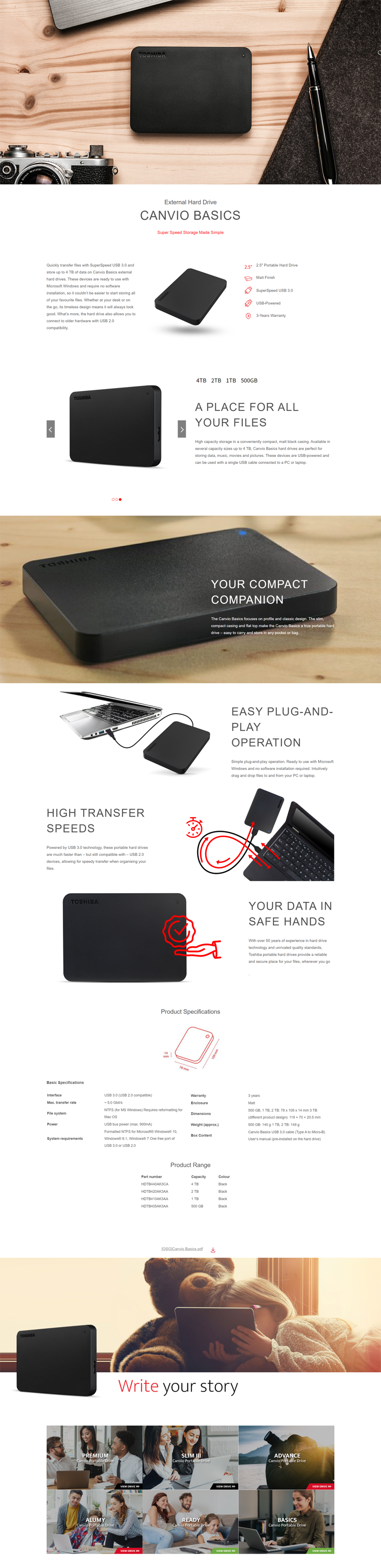 Toshiba 4Tb Canvio Basics Portable Hard Drive Storage. 3 Years Warranty. (Hdtb440Ak3Ca) Hdtb440Ak3Ca