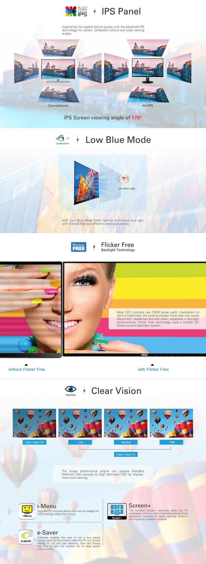 AOC 23.8 inch IPS, Low Blue Mode, Flicker Free, Speaker, Ultra Narrow Border Monitor (I2490VXQ)