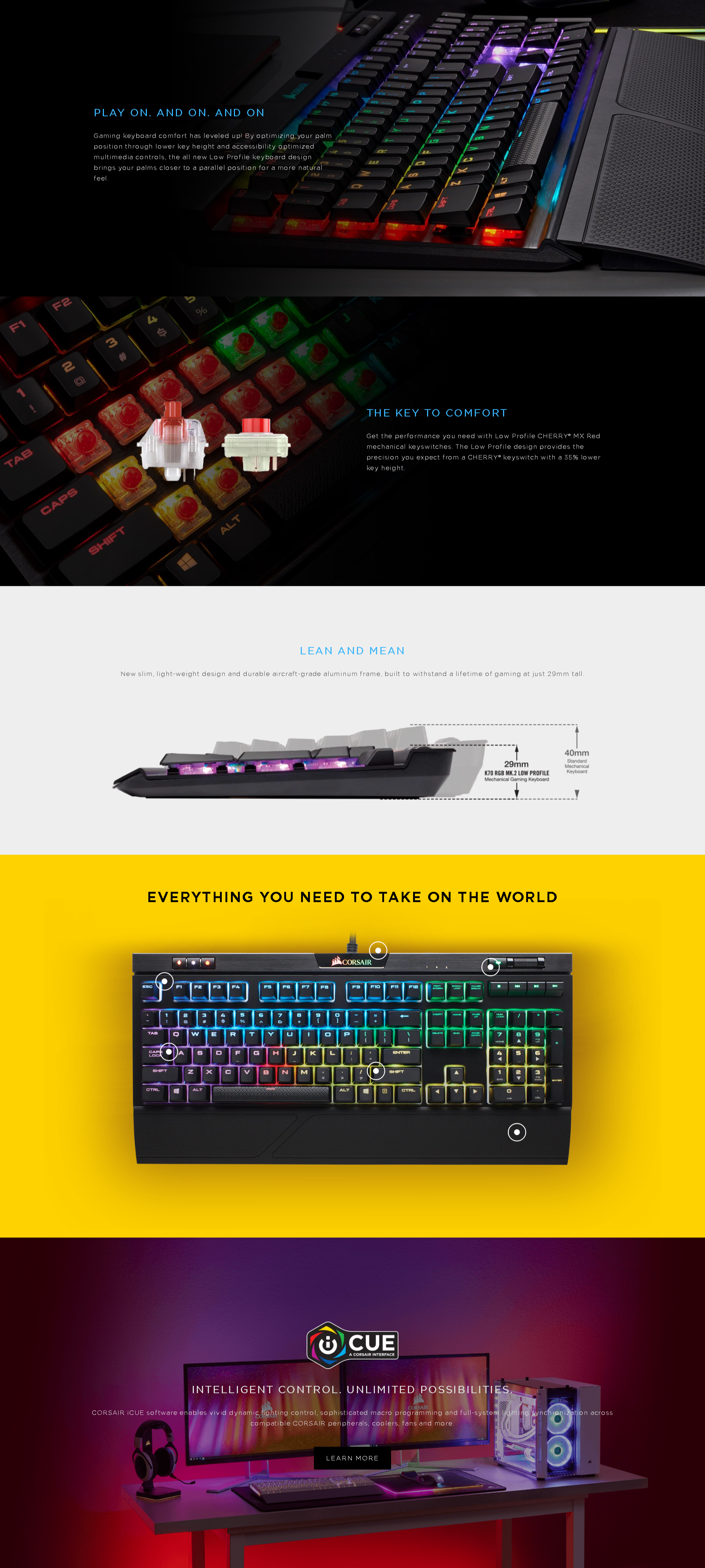 Corsair K70 MK.2 RGB Gaming™ Cherry MX Red, Backlit RGB LED, Aluminium Frame Mechanical Keyboard CH-9109017-NA