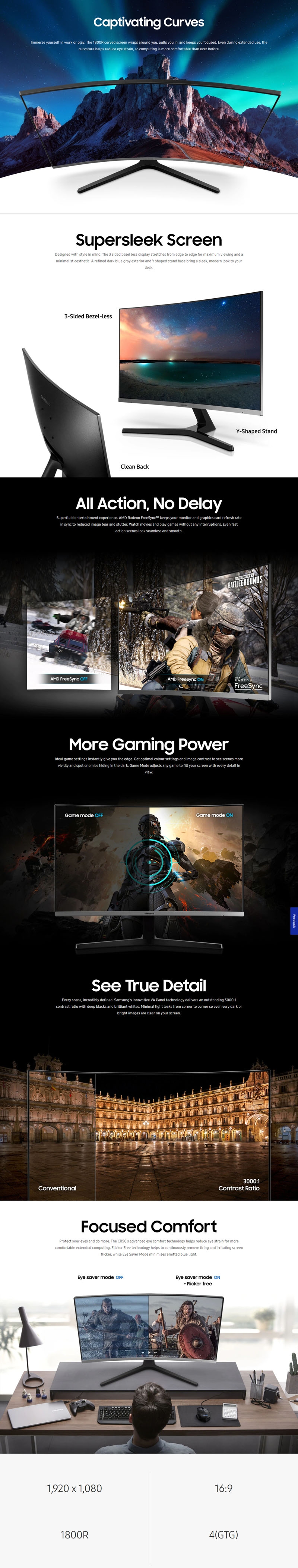 Samsung Cr500 27" Fhd 1800R Curved(16:9) 1920X1080 4Ms 60Hz Freesync Vga Hdmi Vesa 3Y Lc27R500Fhexxy
