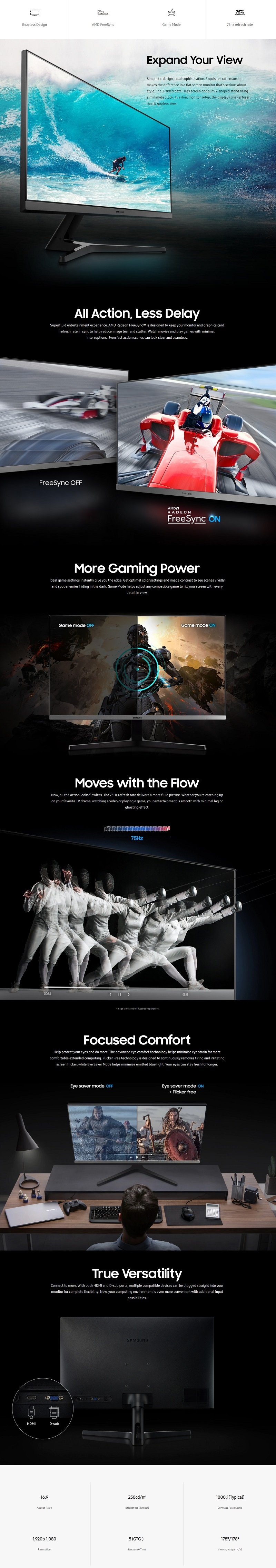Samsung 24" SR350 LED Monitor 1920x1080, 5MS, D-SUB, HDMI, VESA, BEZELESS (LS24R350FHEXXY)